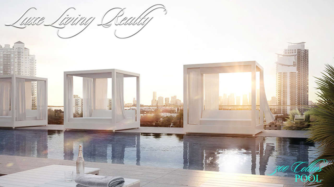 Amenities at the 300 Collins include a swimming pool on the building rooftop that spans over seventy feet, a hot tub, a fitness facility with a variety of equipment, valet and there is also a beach concierge provided. Details on residential features are pending.