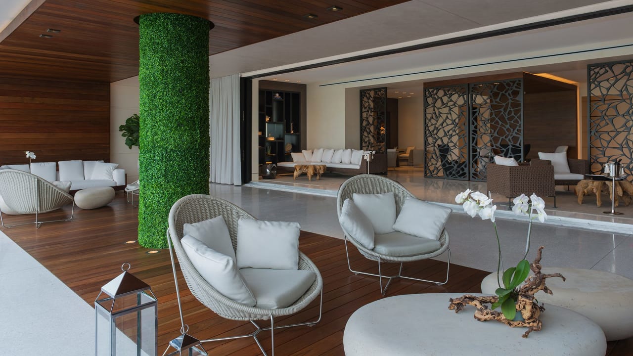 - Lushly landscaped walking gardens designed by Enzo Enea wrapped in Ipe wood decking