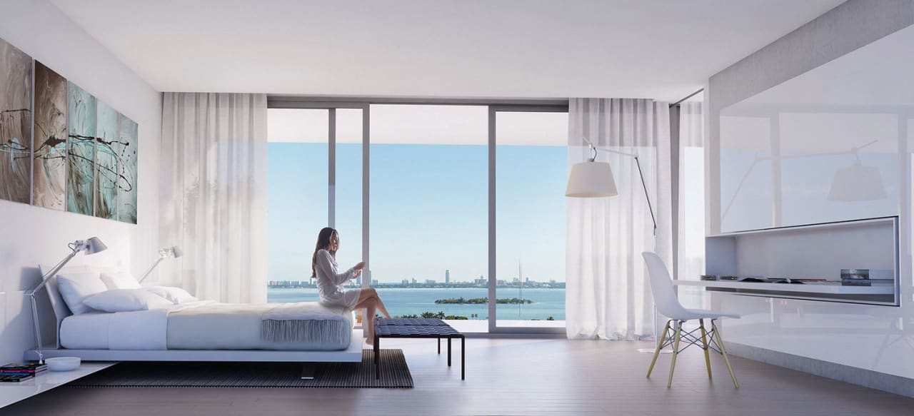 Paraiso Bay is an exquisite oceanfront residential community situated on five acres of the luxurious Edgewater District, just minutes from the heart of Miami’s vibrant arts, entertainment, and design districts and famed Miami Beach. Featuring two towers of 53 stories each, this private oasis offers a striking architecture soaring into the sky, with beautifully landscaped gardens and direct views of awe-inspiring Biscayne Bay. You’ll find a total of 700 Miami condos for sale starting on the sixth floor of each building, 358 units on one and 342 on the other.