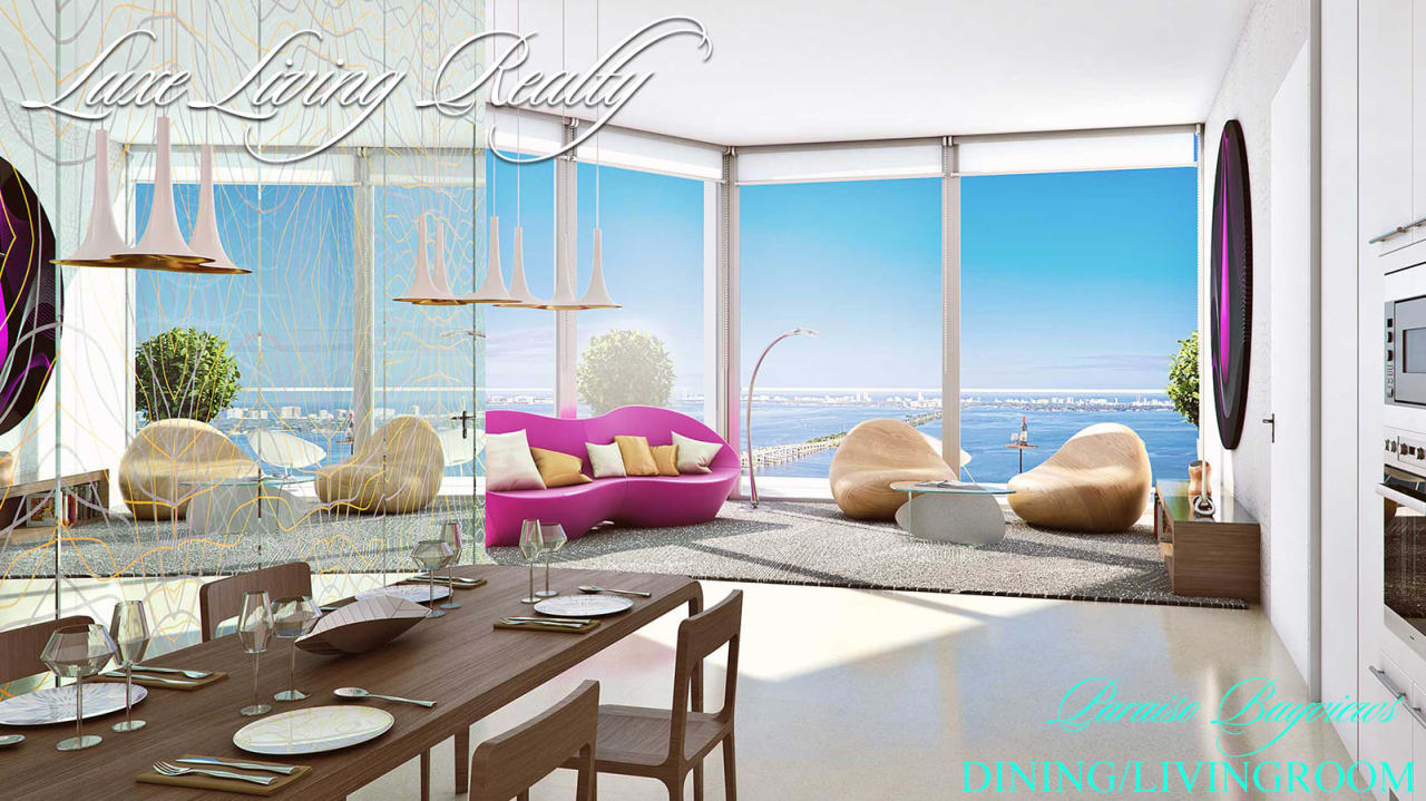Soaring 43 stories above acres of lushly landscaped gardens, and boasting spectacular views of Biscayne Bay, the innovative architecture of Paraiso Bayviews is the work of internationally renowned firm Arquitectonica. Contemporary residences with sheer glass balconies capture the style and spirit of this tropical paradise.